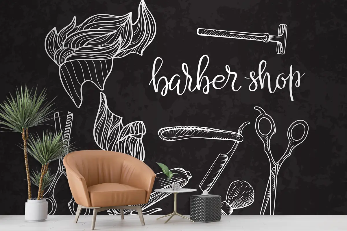 Berber Dükkanı Için Ikon Seti Kuaför Duvar Kağıdı