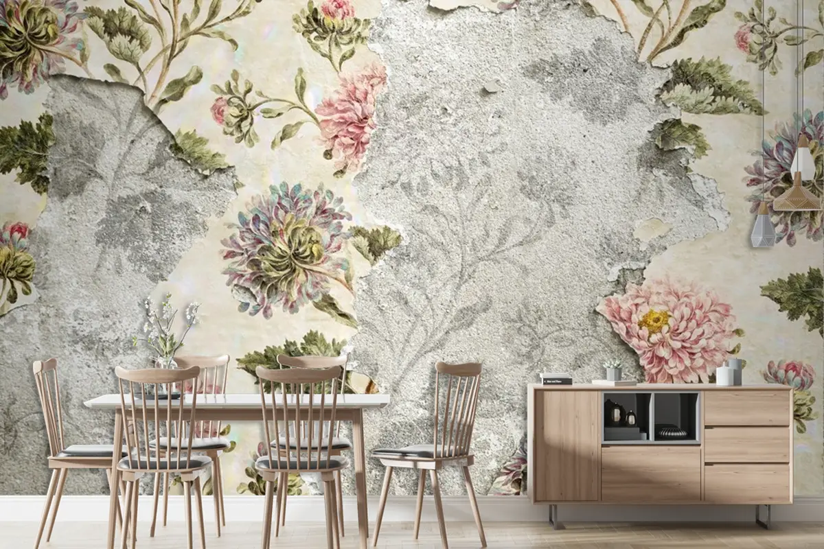Beton Duvar Kağıdı Duvar Üzerine Çiçek Duvar Kağıdı Soyulması