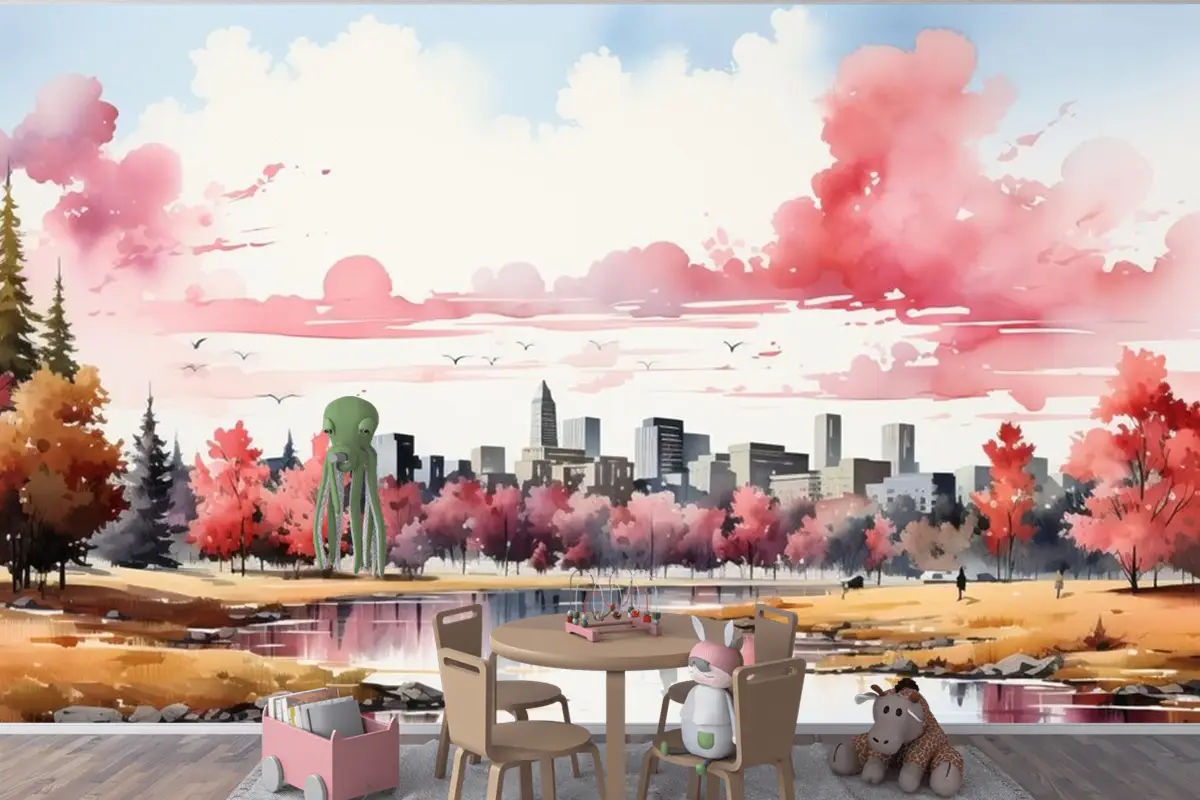Beyaz Arka Plan Çocuk Odası Duvar Kağıdı Duvarında Geometrik Arazi