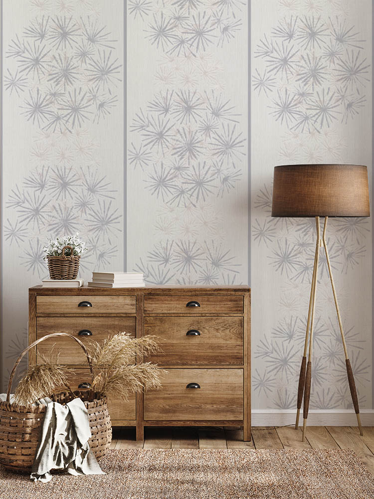 Beyaz Gri Çiçek Desen Ucuz Duvar Kağıdı 53697
