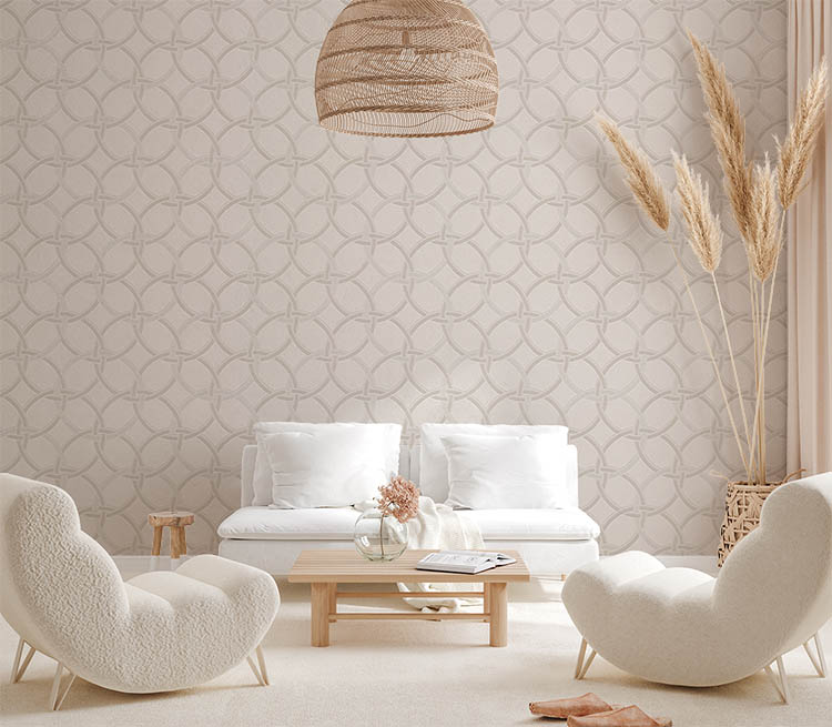 Beyaz Krem Geometrik Desen Ucuz Duvar Kağıdı 53965