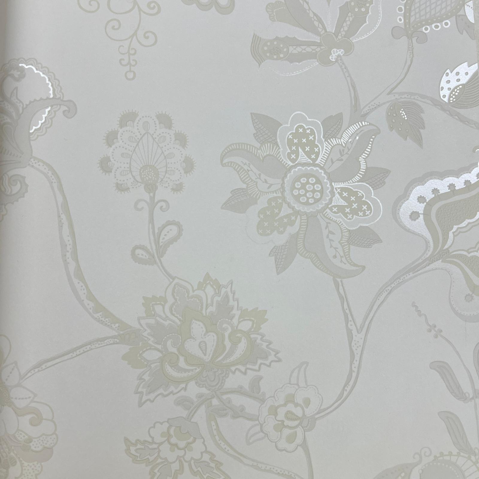 Beyaz Krem Parlak Çiçek Desenli Duvar Kağıdı 3006