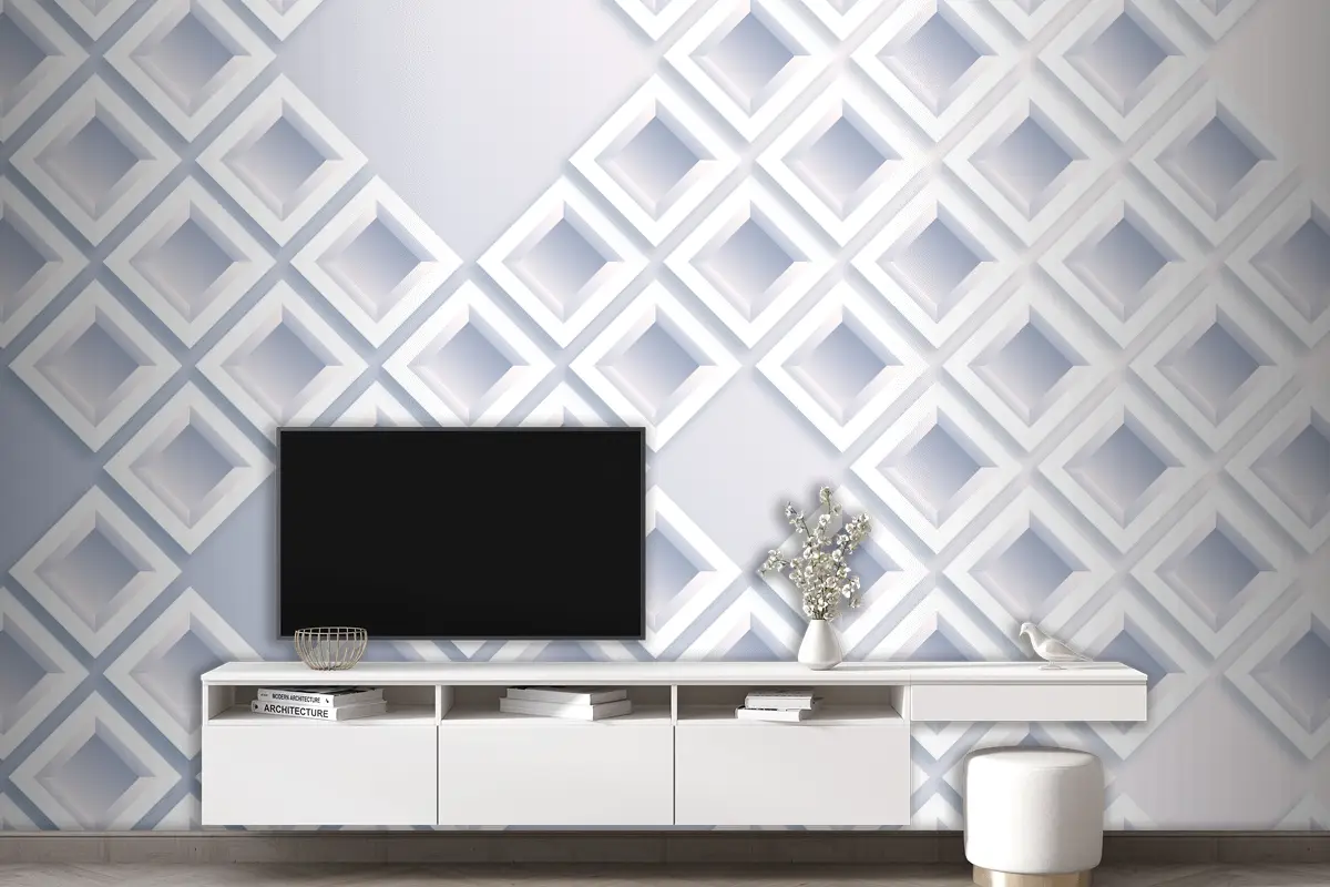 Beyaz Soyut 3D Kağıt Stili Oturma Odası Duvar Kağıdı