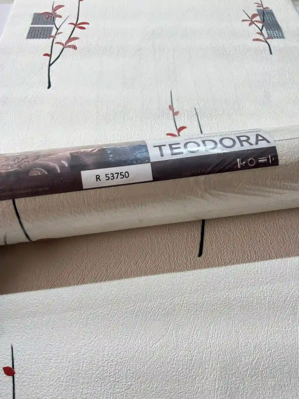Beyaz Üzeri Kırmızı Çiçek Desen Ucuz Duvar Kağıdı 53750