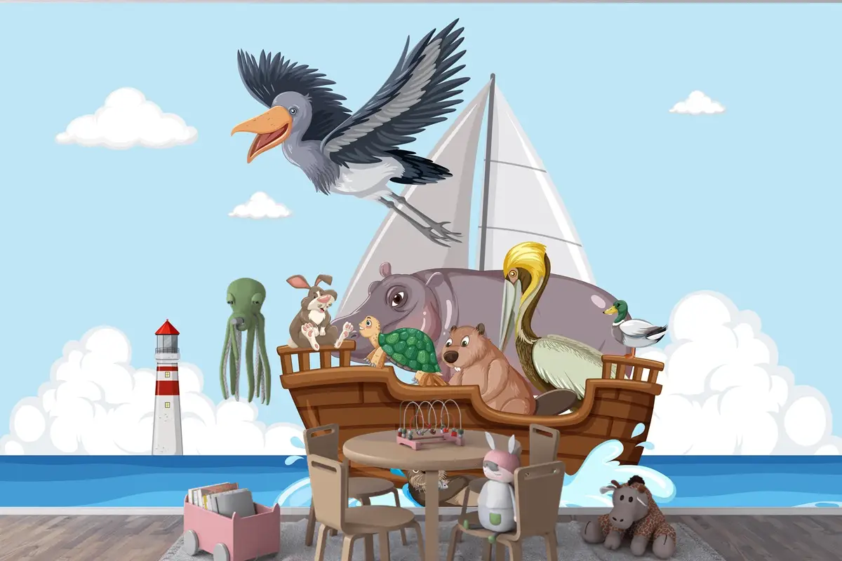 Bir Teknede Vahşi Hayvanlar Çocuk Odası Duvar Kağıdı