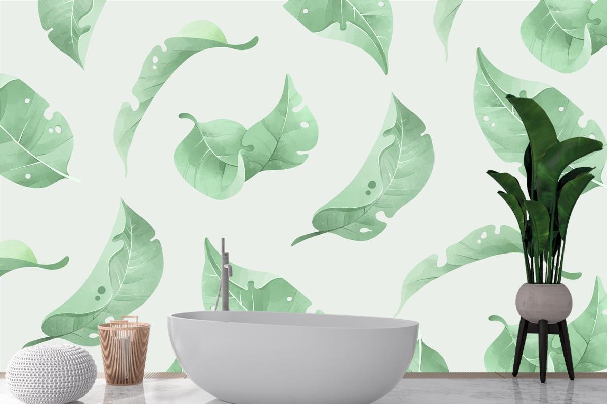 Bitki Örtüsü Tropikal Arka Plan Banyo Duvar Kağıdı