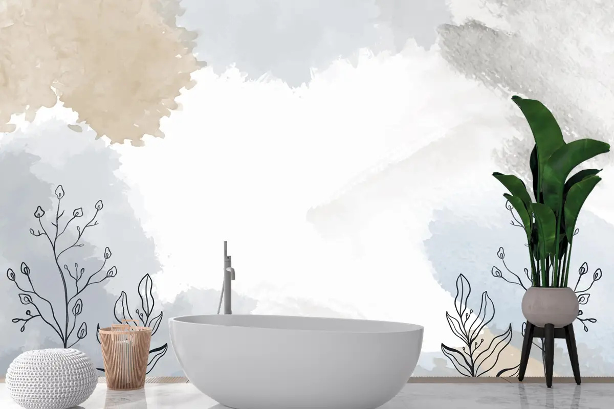 Bitkilerle Suluboya Elle Çizilmiş Arka Plan Banyo Duvar Kağıdı