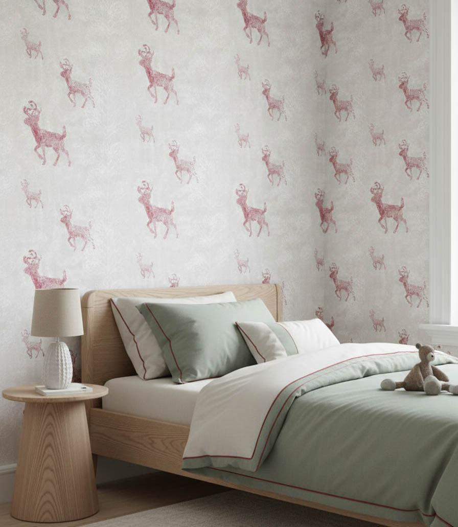 Bordo Geyik Desenli Gri Duvar Kağıdı 3003