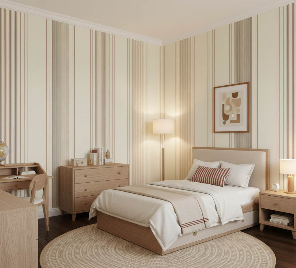 Bordo Krem Parlak Çizgili Ucuz Duvar Kağıdı 773378