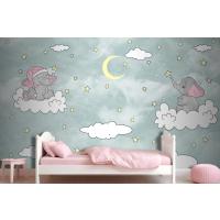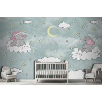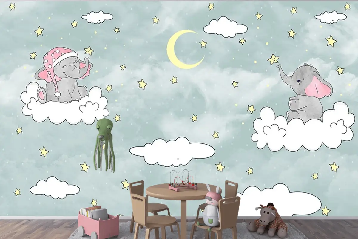Bulut Üzerinde Sevimli Filler Duvar Kağıdı