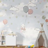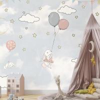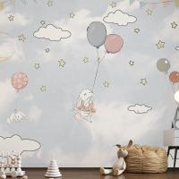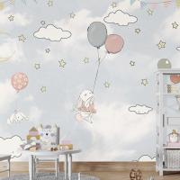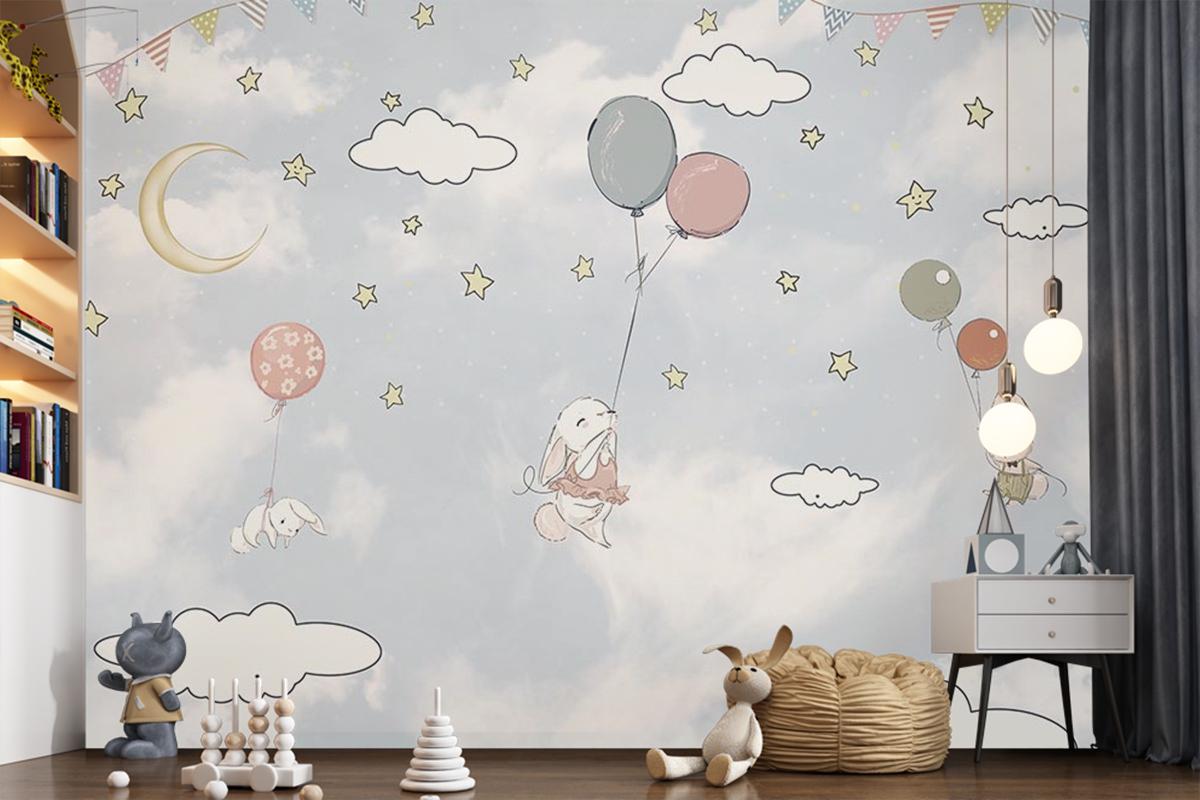 Bulutlar Arasında Balonlar Ve Tavşanlar Çocuk Odası Duvar Kağıdı