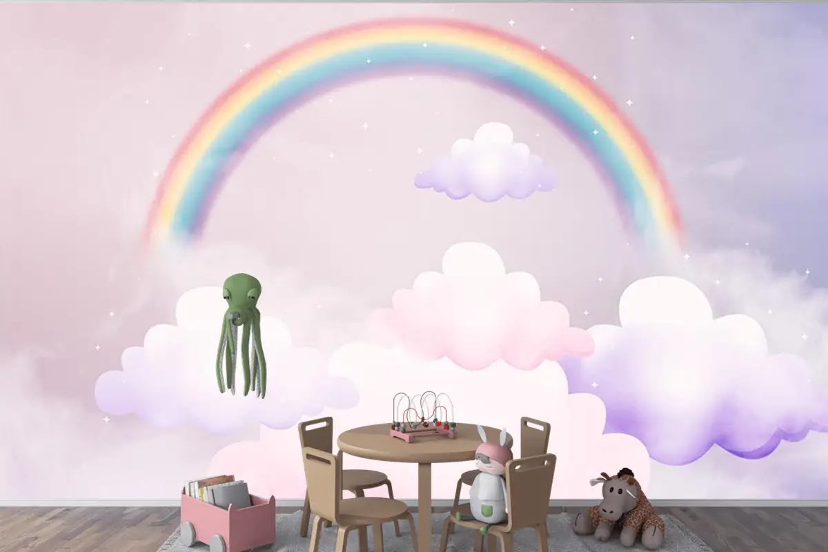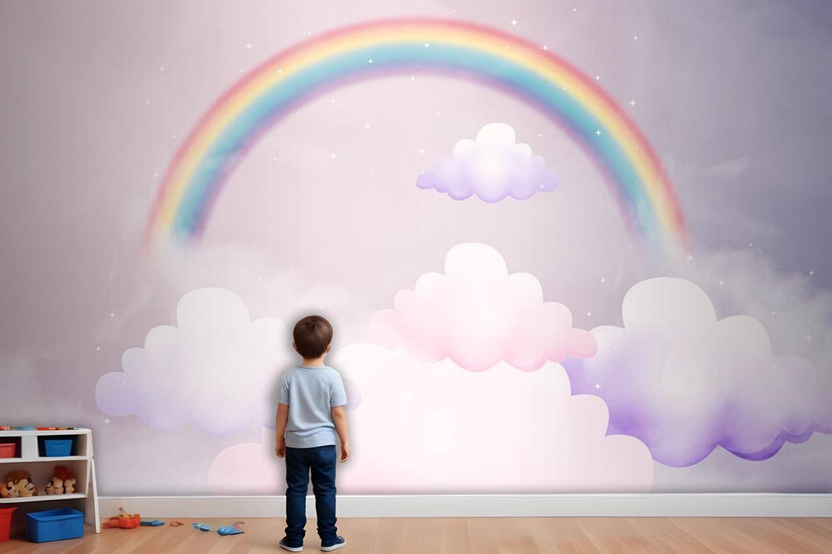 Bulutlar Ve Gökkuşağı Çocuk Odası Duvar Kağıdı