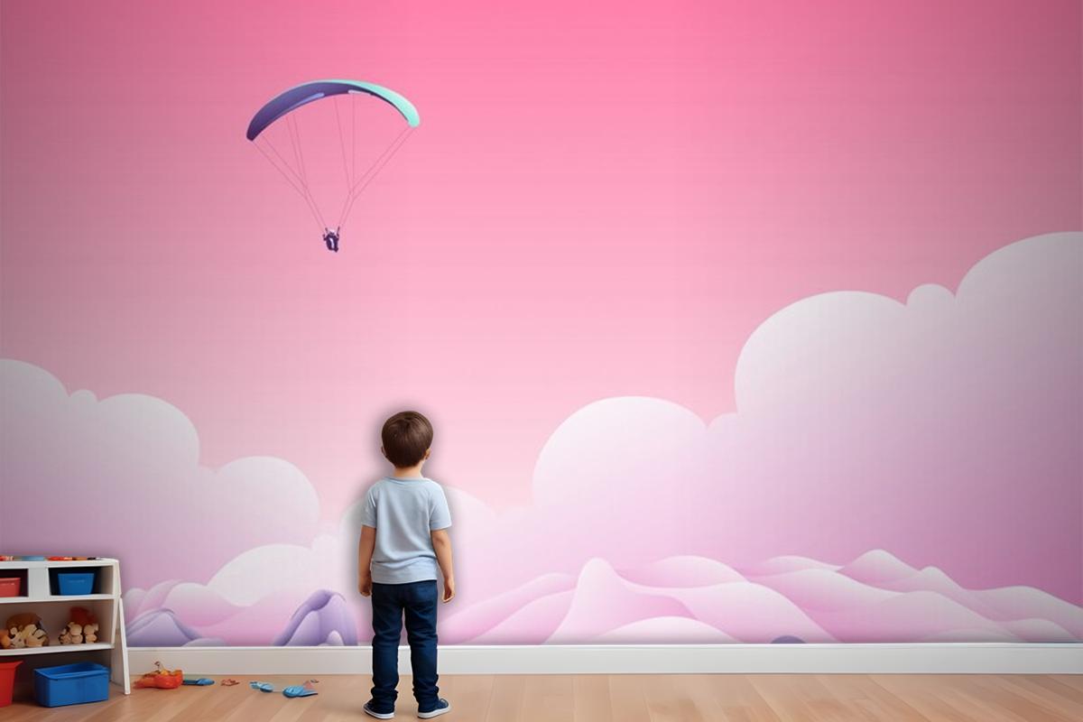 Bulutların Üstünde Paraşüt Çocuk Odası Duvar Kağıdı