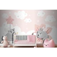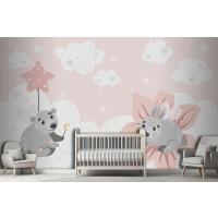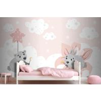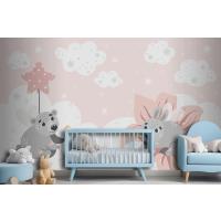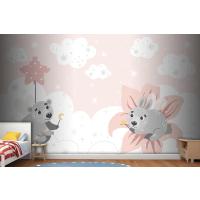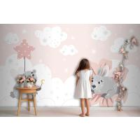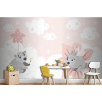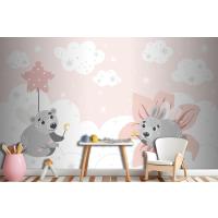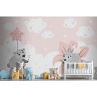 Bulutların Üzerinde Sevimli Masal Hayvanları Çocuk Odası Duvar Kağıdı Yazdırmaya Uygun