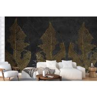 Büyük Gold Tonlarında Yaprak Desenli Duvar Kağıdı