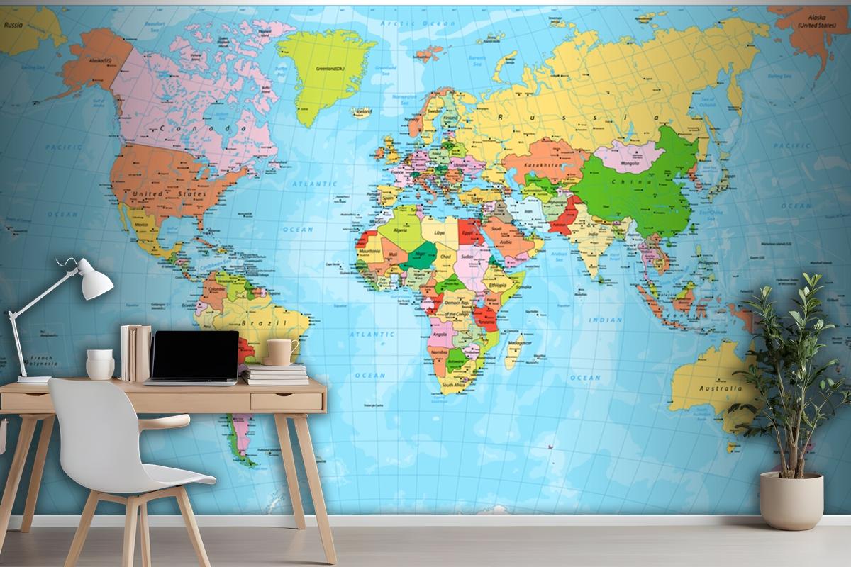 Büyük Harflerle Detaylı Siyasi Dünya Haritası Duvar Kağıdı
