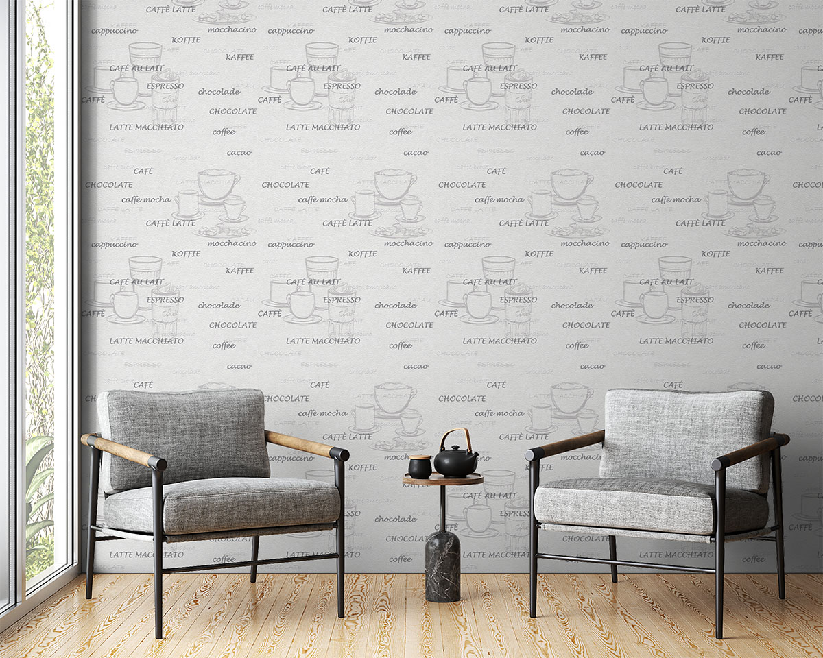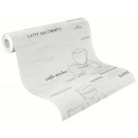 Cafe Desen Beyaz Gri Renlerinde Ucuz Duvar Kağıdı 53139