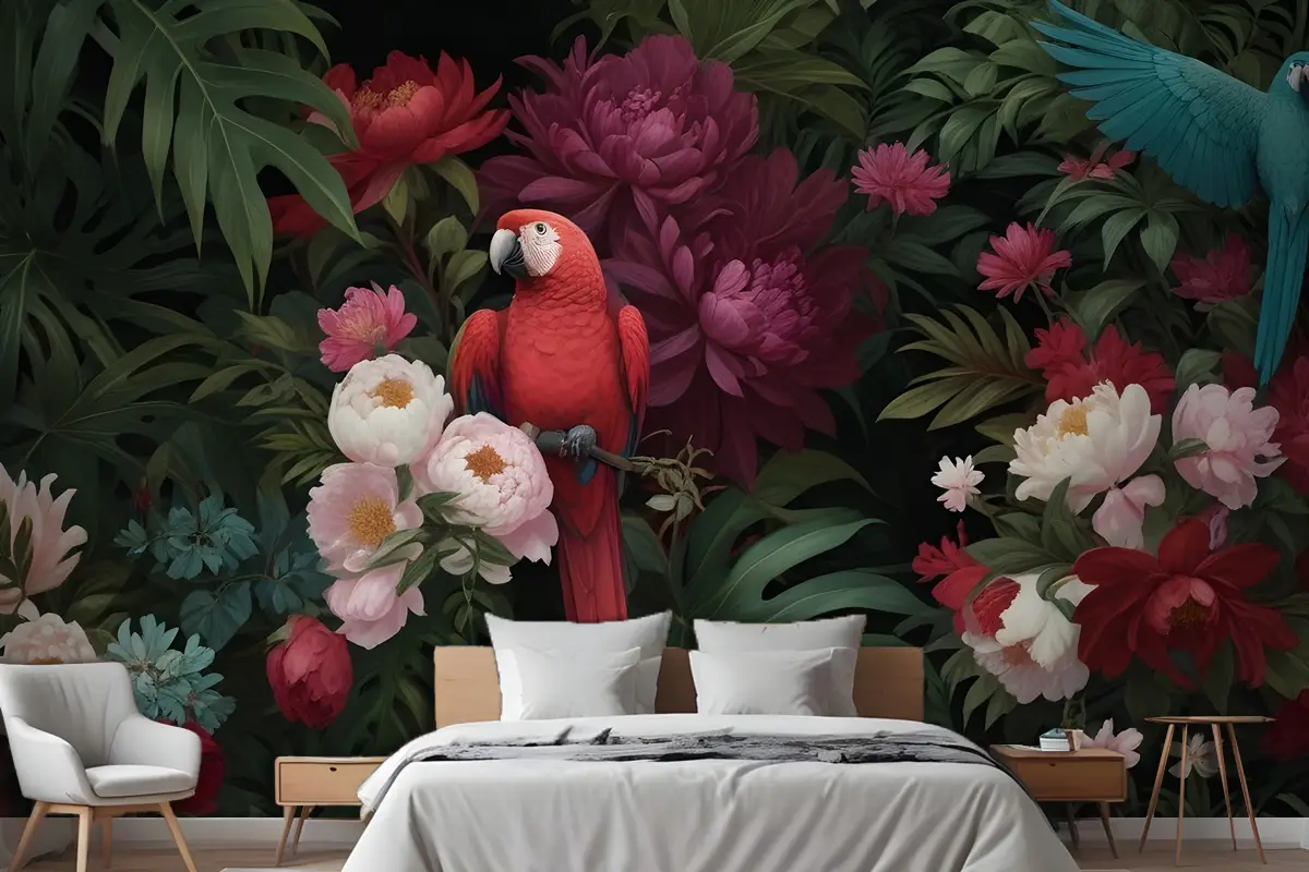 Canlı Tropikal Çiçek Düzenleme Yatak Odası Yatak Odası Duvar Kağıdı Dijital Resim