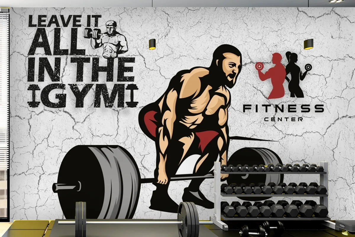 Çatlak Duvar Temalı Fitness Center Duvar Kağıdı