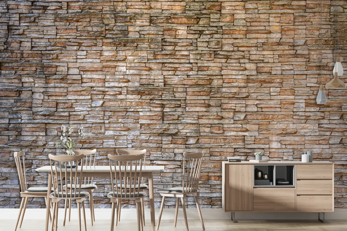 Çatlak Taştan Yapılmış Bir Duvar Kahverengi Ve Gri Duvar Kağıdı