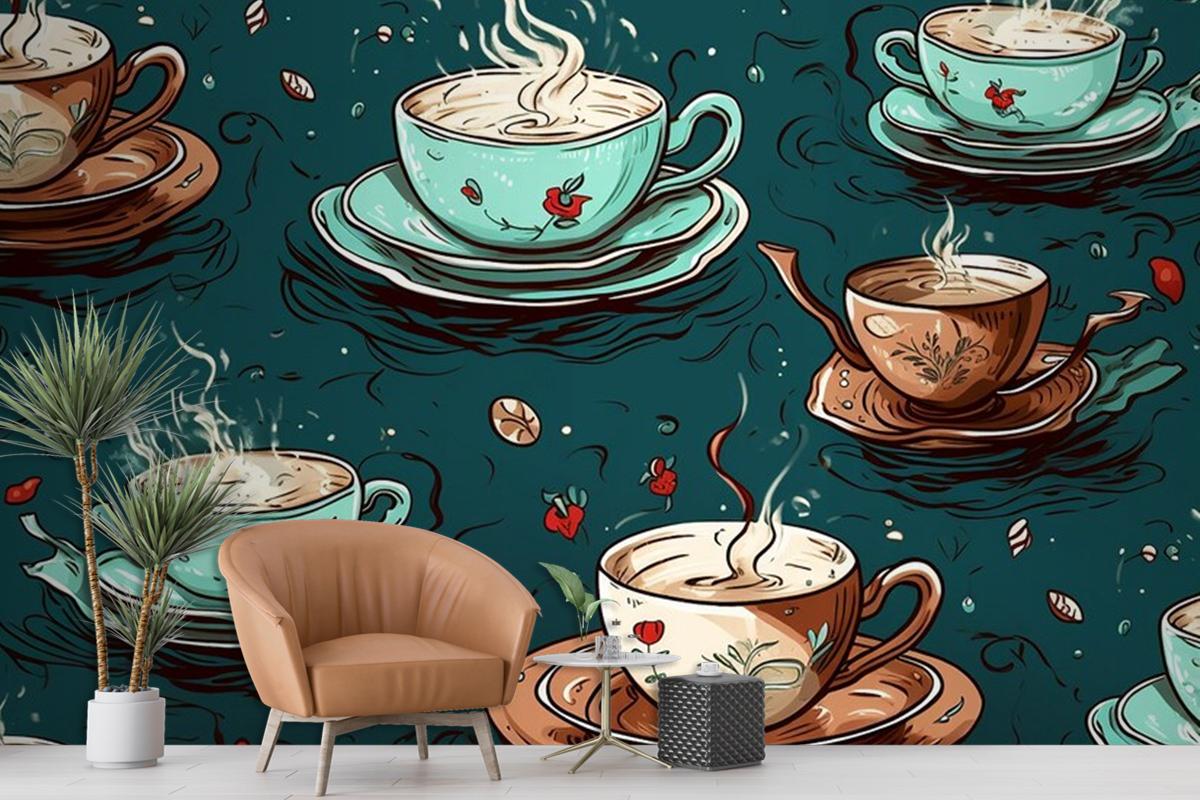 Çay Fincanlarının Desenleri Cafe Duvar Kağıdı