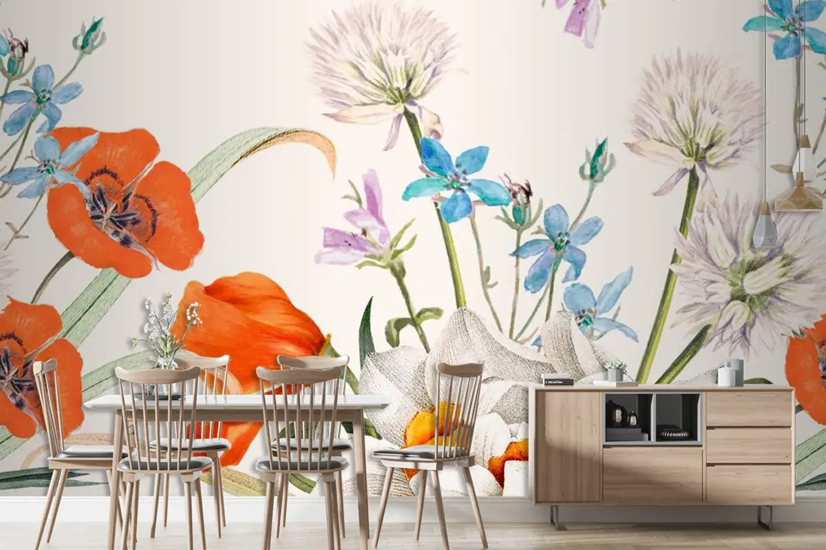 Çiçek Açan Bahar Çiçek Desenli Duvar Kağıdı