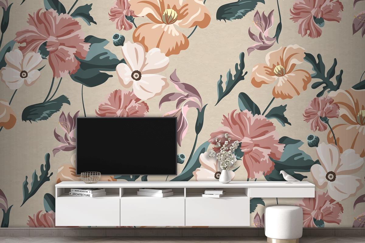 Çiçek Açan Renkli Çiçek Dikişsiz Desen Duvar Kağıdı