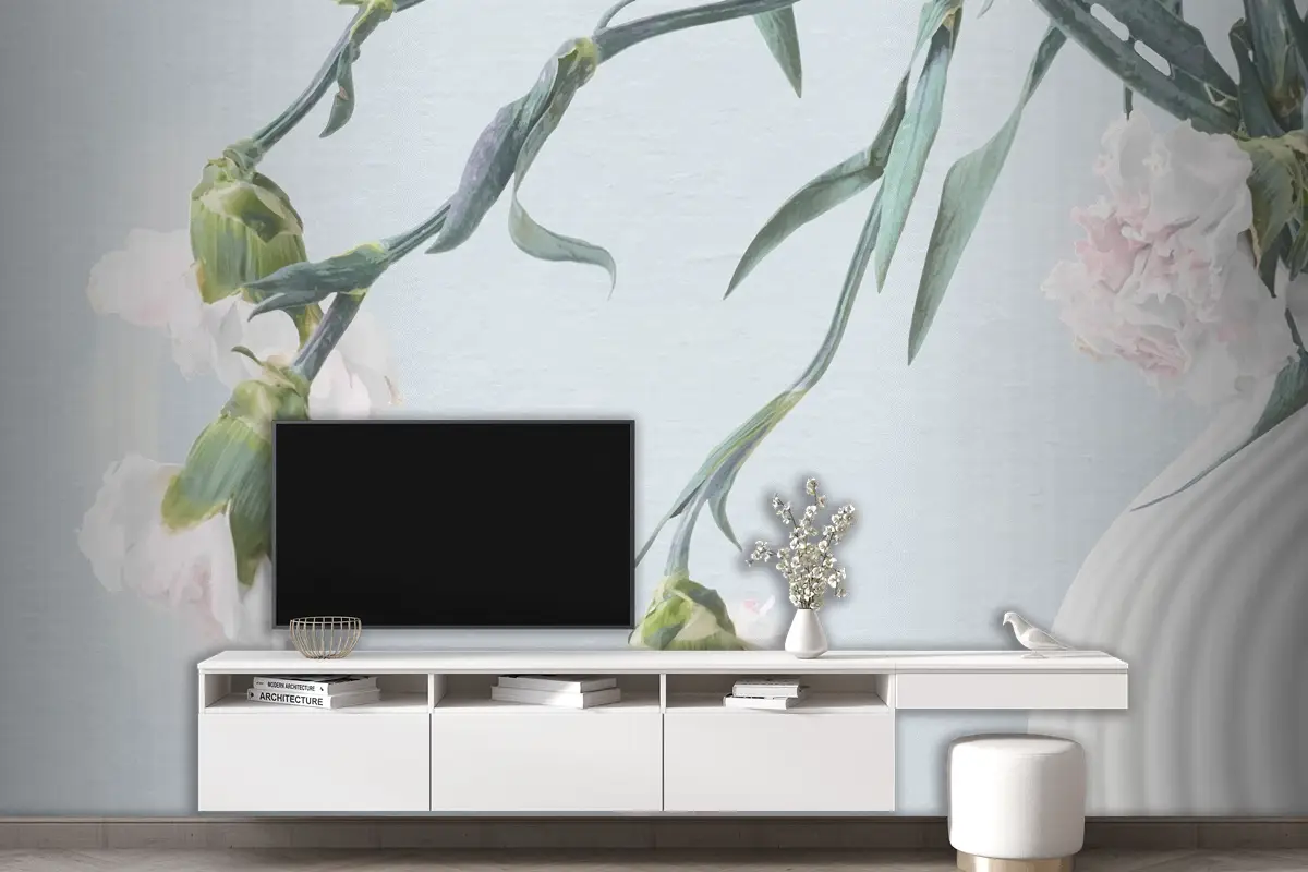 Çiçek Arka Plan Mavi Ve Pembe Karanfil Psychedelic Sanat Duvar Kağıdı