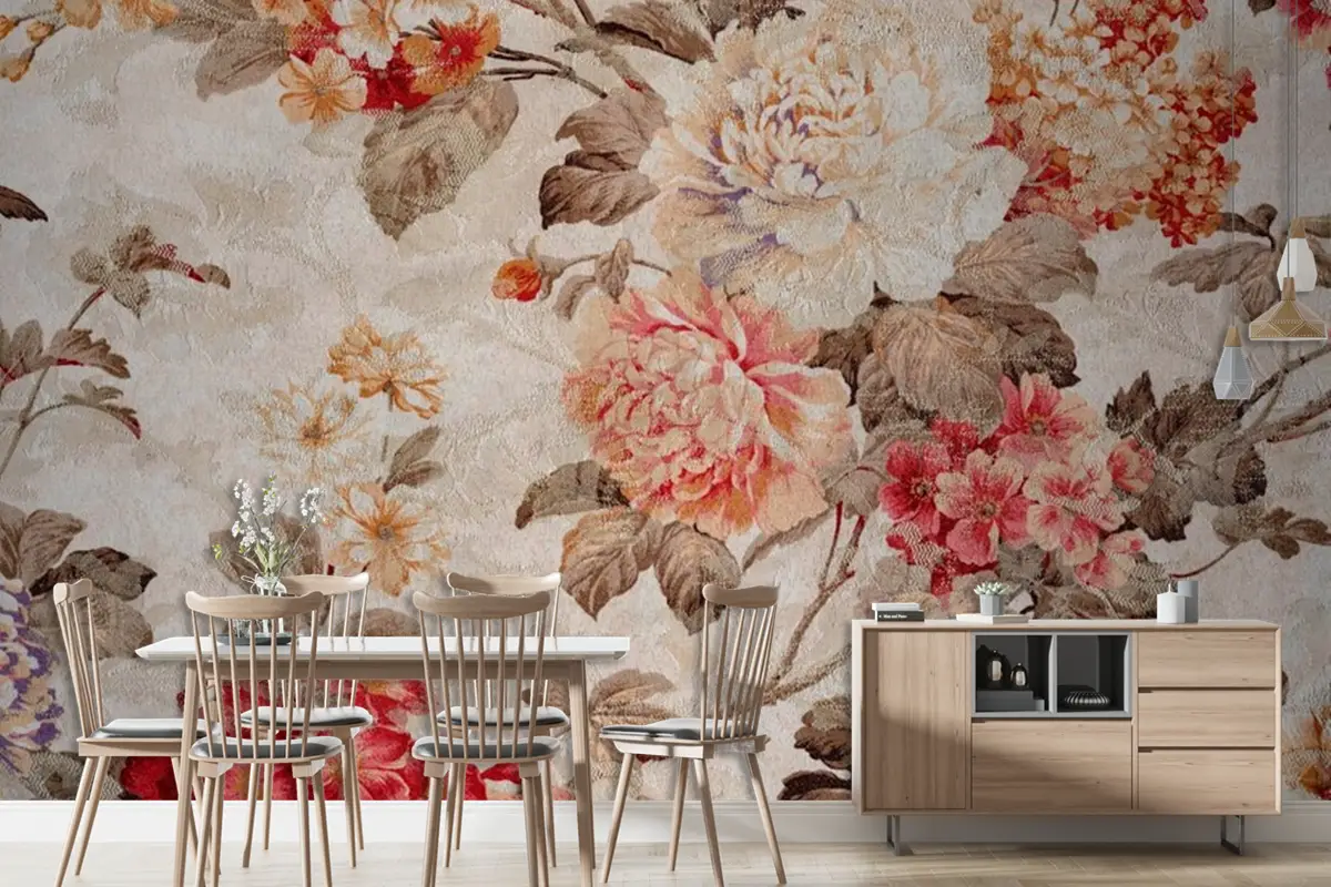 Çiçek Desenli Kumaş Doku Duvar Kağıdı