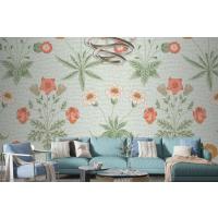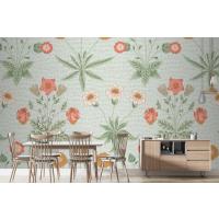 Çiçek Desenli Yeşil Duvar Kağıdı