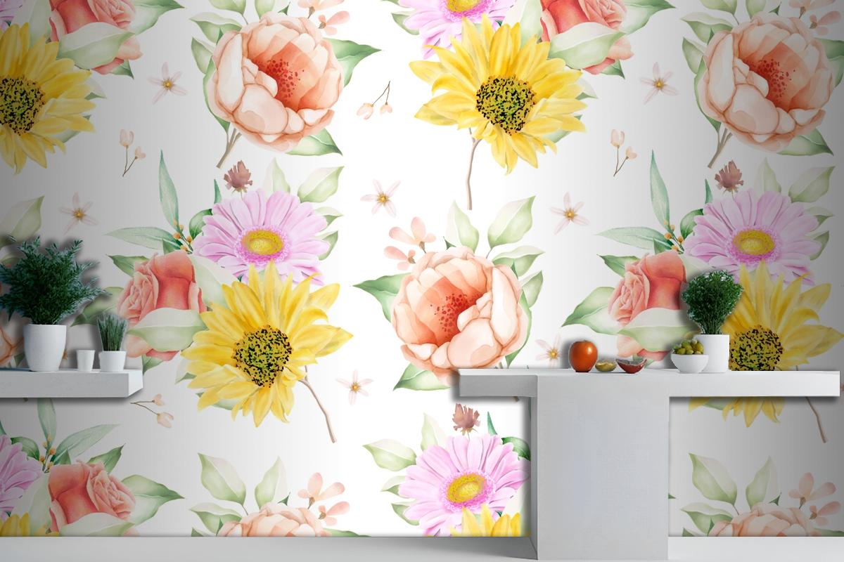 Çiçek Dikişsiz Desen Çiçek Açan Mutfak Duvar Kağıdı
