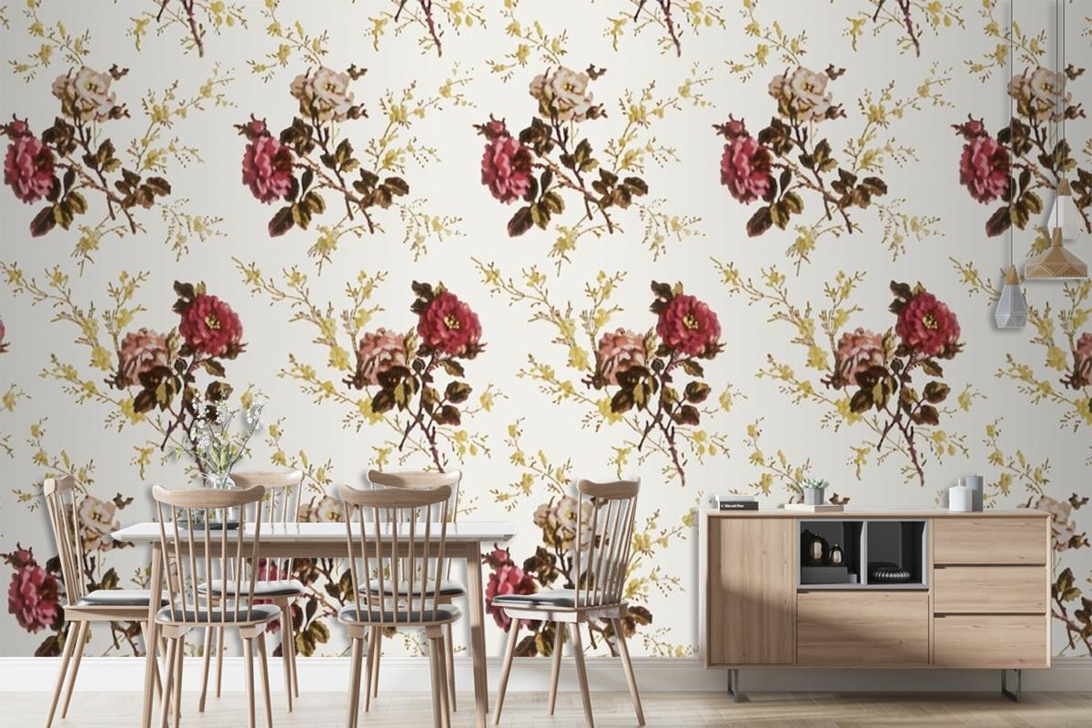 Çiçek Vintage Tarzı Dikişsiz Desen Duvar Kağıdı