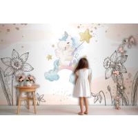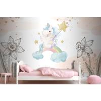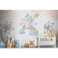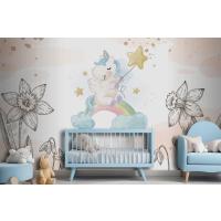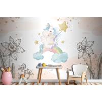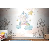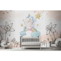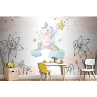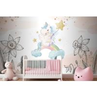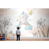 Çiçekler Arasında Unicorn Çocuk Odası Duvar Kağıdı