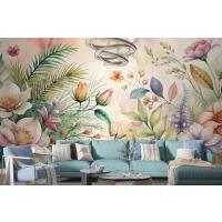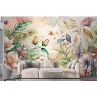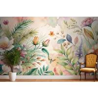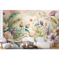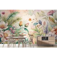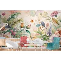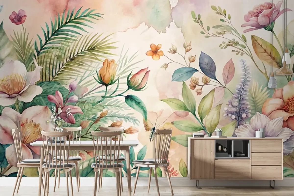 Çiçekler Ve Yemyeşil Bitkiler İçeren Suluboya Arka Plan Duvar Kağıdı