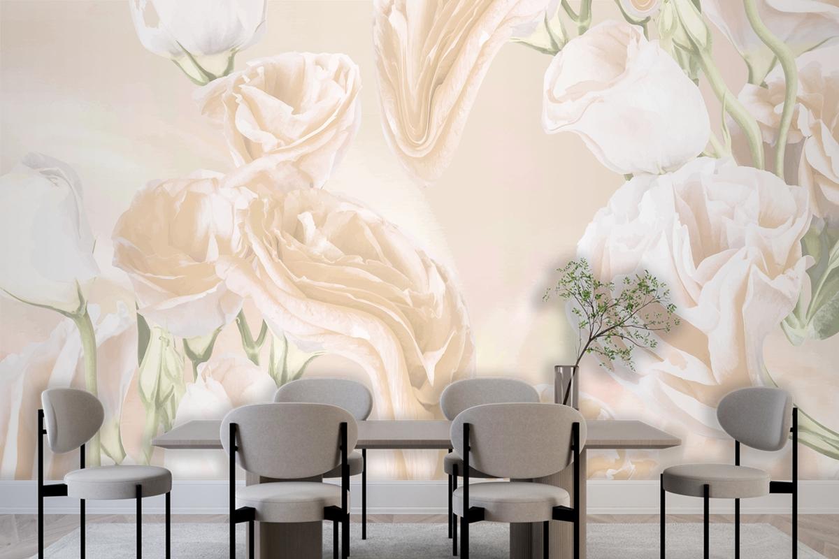 Çiçekli Arka Plan Bej Gül Psychedelic Sanat Yemek Odası Yemek Odası Duvar Kağıdı