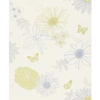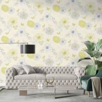 Çiçekli Kelebekli Mavi Yeşil Ucuz Duvar Kağıdı 54249