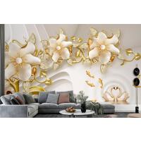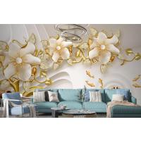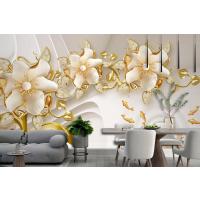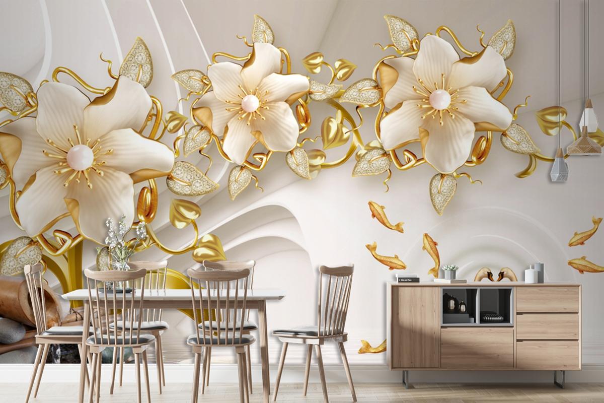 Çiçekli Kuğu Ve Balık Arka Planlı 3D Duvar Kağıdı