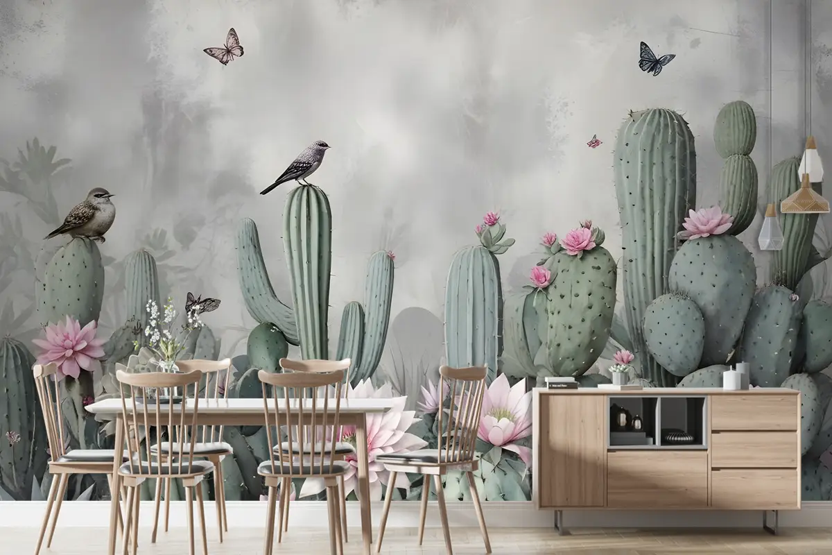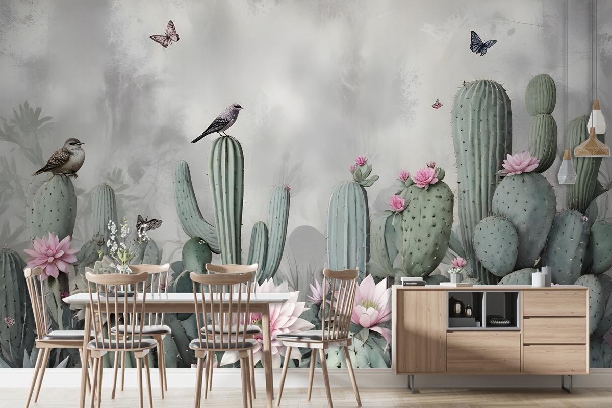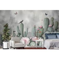 Çiçekli Suluboya Kaktüs Duvar Kağıdı