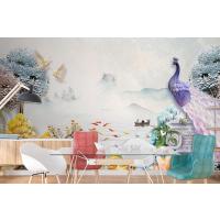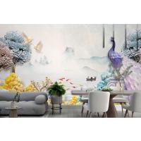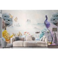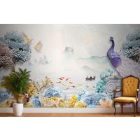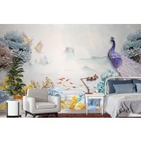Çiçekli Ve Tavus Kuşu Arka Planlı 3D Duvar Kağıdı Tasarımı