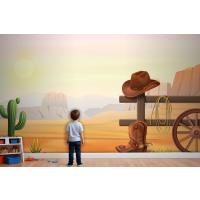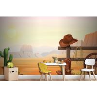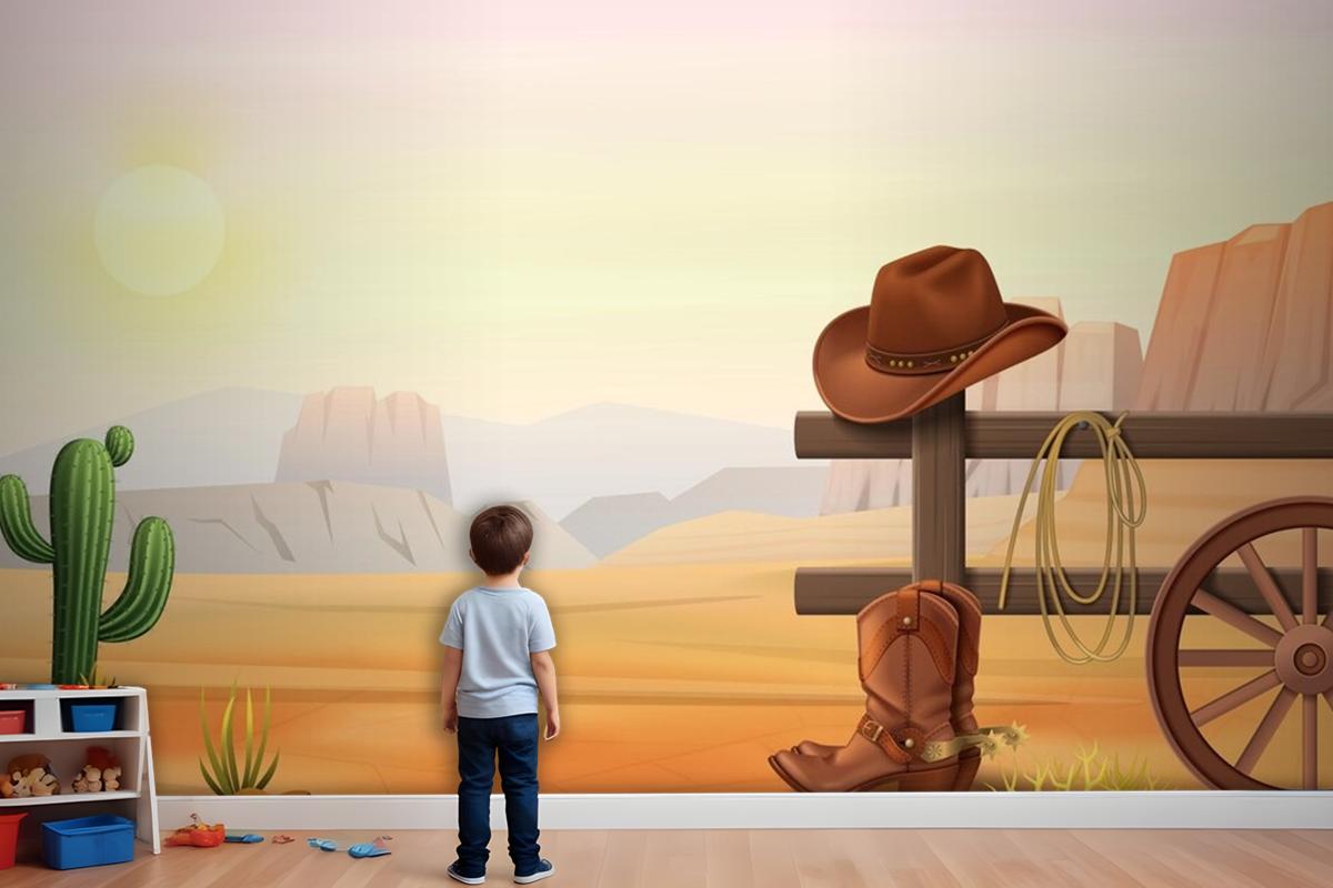 Çitin Üzerinde Kovboy Çizmeleri Ve Şapka Çocuk Odası Duvar Kağıdı
