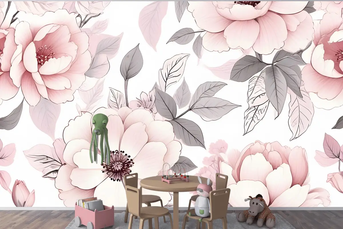 Çocuk Kreş Çiçek Pembe Gül Desenli Çocuk Odası Duvar Kağıdı