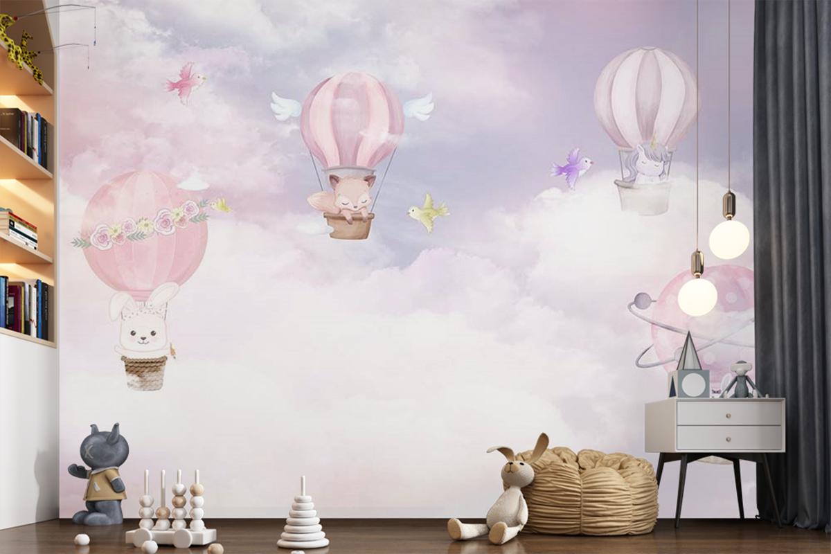 Çocuk Odası Duvar Kağıdı Balonlar Ve Sevimli Hayvanlar