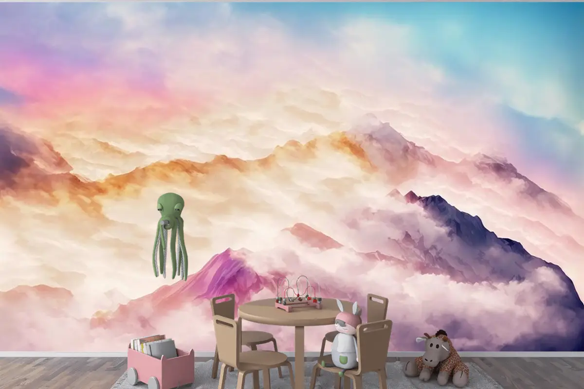 Çocuk Odası Duvar Kağıdı Bulutlar Ve Dağlar