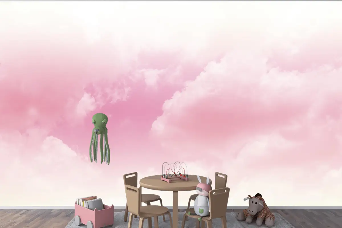 Çocuk Odası Duvar Kağıdı Pembe Bulutlar