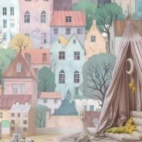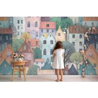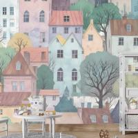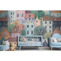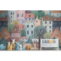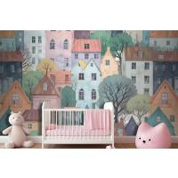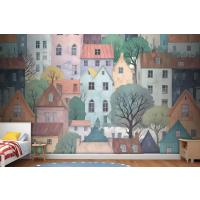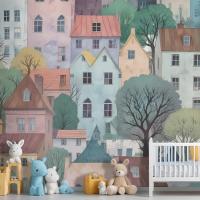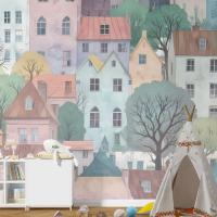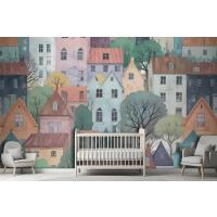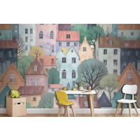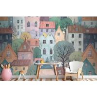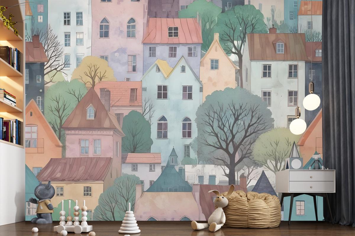 Çocuklar Küçük Kasaba Sevimli Suluboya Ev Çocuk Odası Duvar Kağıdı