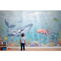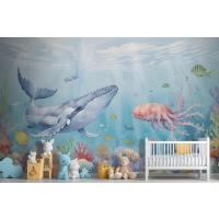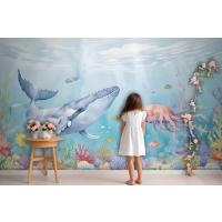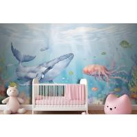 Çocuklar Sevimli Balina Denizaltı Çocuk Odası Duvar Kağıdı Duvar Resimleri