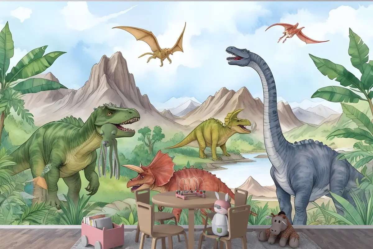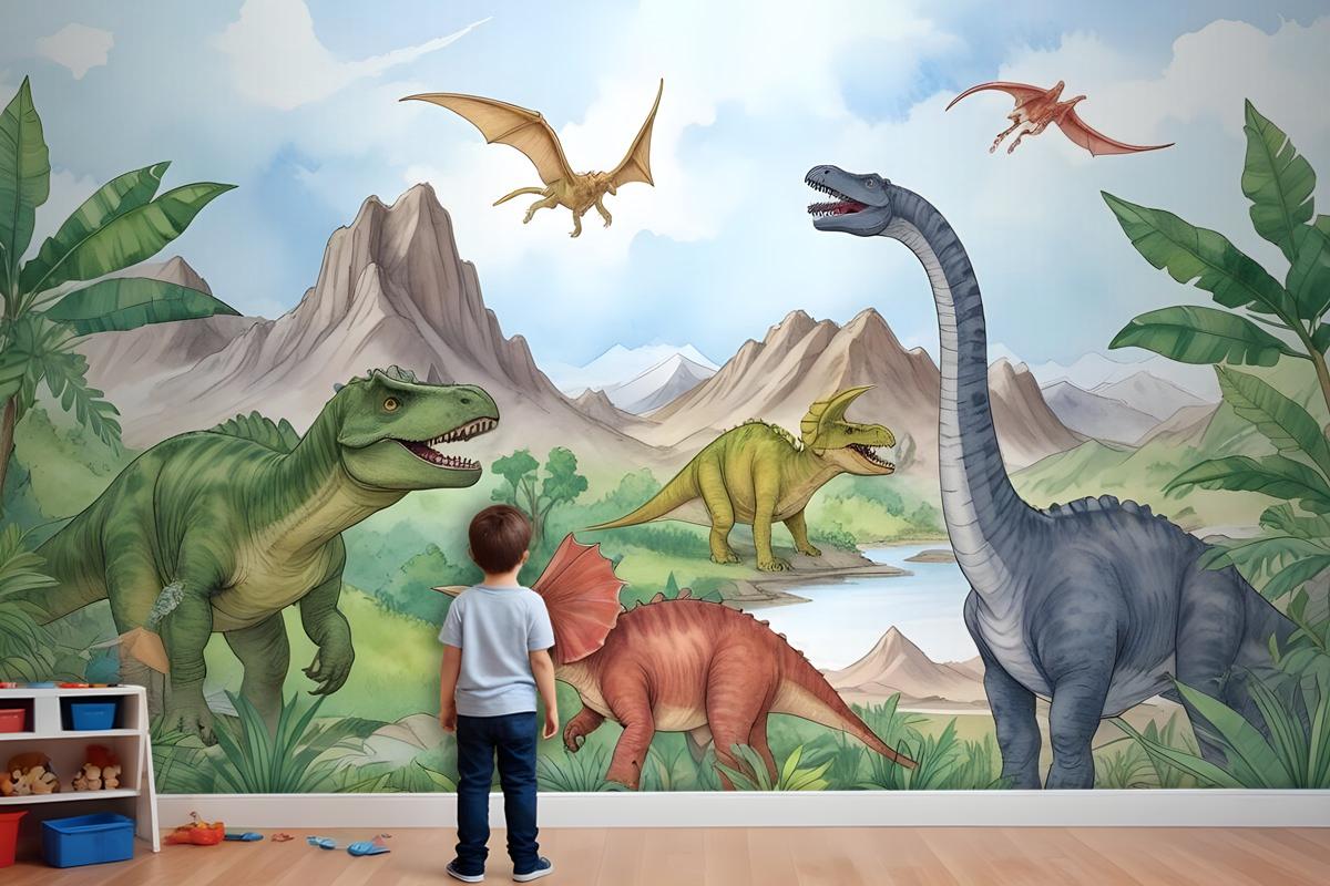 Çocuklar Tarih Öncesi Dinozor Çocuk Odası Duvar Kağıdı