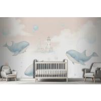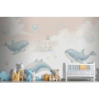 Çocuklar Yumuşak Balina Denizaltı Yaşamı Çocuk Odası Duvar Kağıdı