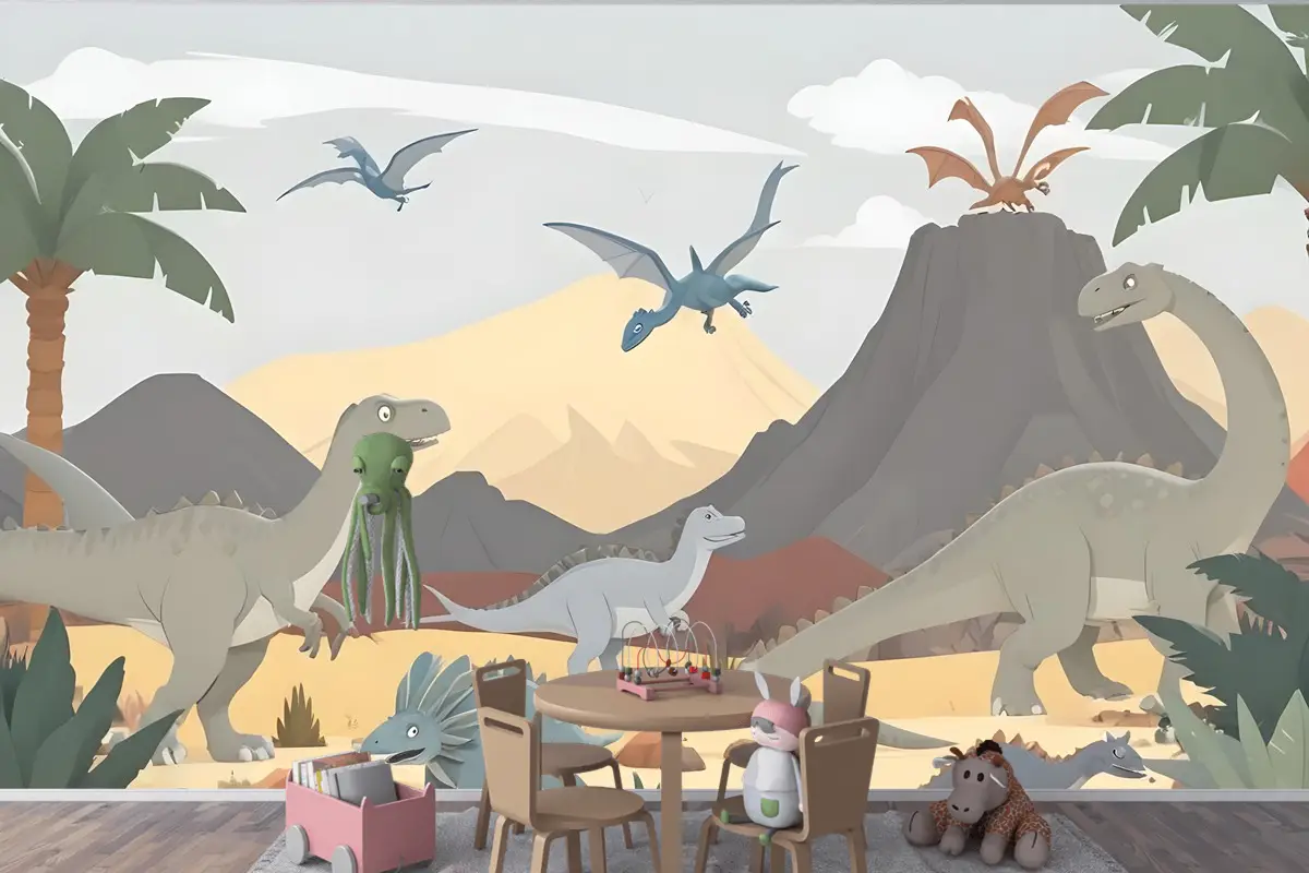 Çocuklar Yumuşak Dinozorlar Çocuk Odası Duvar Kağıdı