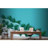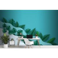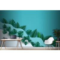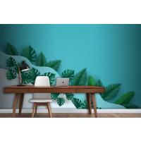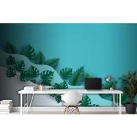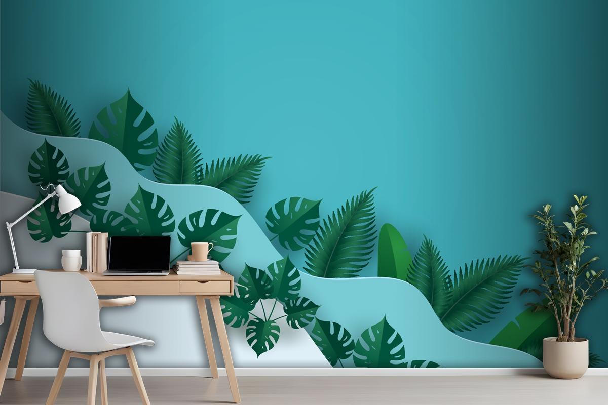 Çok Dalga Katmanlı Ofis Duvar Kağıdı Duvarında Yeşil Yapraklar Veya Yeşillik